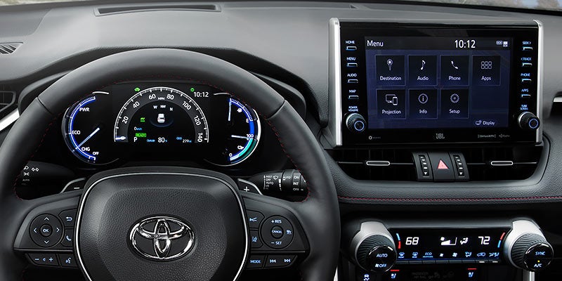 A cockpit designed with drivers—and style—in mind. Available Black SofTex® -trimmed seats with red contrast stitching help emphasize the sporty side of RAV4 Prime. Standard heated front seats help make it easy to dial in the right amount of comfort.