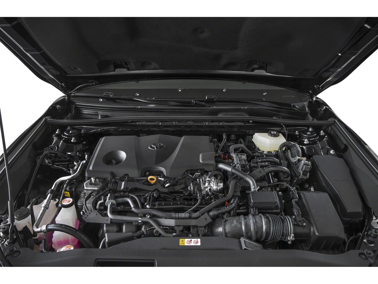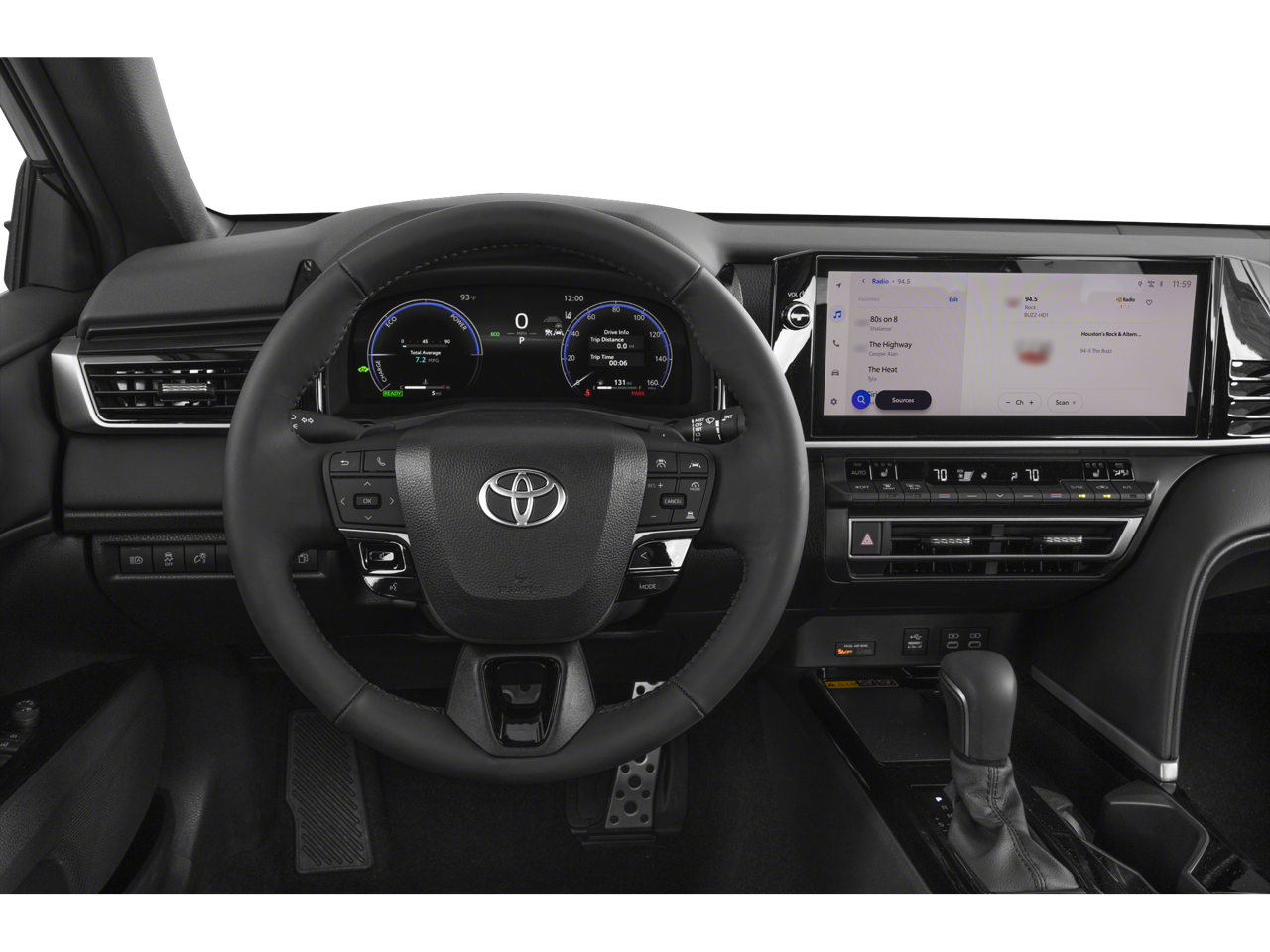 4-Wheel Disc Brakes, 6 Speakers, ABS brakes, Air Conditioning, Alloy wheels, AM/FM radio: SiriusXM, Apple CarPlay/Android Auto, Auto High-beam Headlights, Auto-dimming Rear-View mirror, Automatic temperature control, Brake assist, Bumpers: body-color, Delay-off headlights, Driver door bin, Driver vanity mirror, Dual front impact airbags, Dual front side impact airbags, Electronic Stability Control, Emergency communication system: Safety Connect (5-year trial), Exterior Parking Camera Rear, Four wheel independent suspension, Front anti-roll bar, Front Bucket Seats, Front Center Armrest, Front dual zone A/C, Front reading lights, Fully automatic headlights, Garage door transmitter: HomeLink, Heated door mirrors, Heated Front Seats, Heated front seats, Heated steering wheel, Illuminated entry, Knee airbag, Leather Seat Trim, Leather Shift Knob, Leather steering wheel, Low tire pressure warning, Navigation system: Drive Connect (1 year trial) includes Cloud Navigation with real time traffic and Google POI, Occupant sensing airbag, Outside temperature display, Overhead airbag, Overhead console, Panic alarm, Passenger door bin, Passenger vanity mirror, Power door mirrors, Power driver seat, Power passenger seat, Power steering, Power windows, Radio data system, Radio: 12.3 Toyota Multimedia Audio, Rear anti-roll bar, Rear reading lights, Rear seat center armrest, Rear window defroster, Remote keyless entry, Security system, Speed control, Speed-sensing steering, Split folding rear seat, Spoiler, Steering wheel mounted audio controls, Telescoping steering wheel, Tilt steering wheel, Traction control, Trip computer, Turn signal indicator mirrors, Variably intermittent wipers, Wheels: 19 Smoked Gray and Black-Finished Alloy.