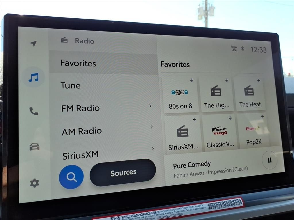 - 8-in. Toyota Audio Multimedia display with 6-speaker audio system, wireless Apple CarPlay® & Android Auto™ compatibility, SiriusXM® 3-month trial subscription. See toyota.com/connected-services for details.