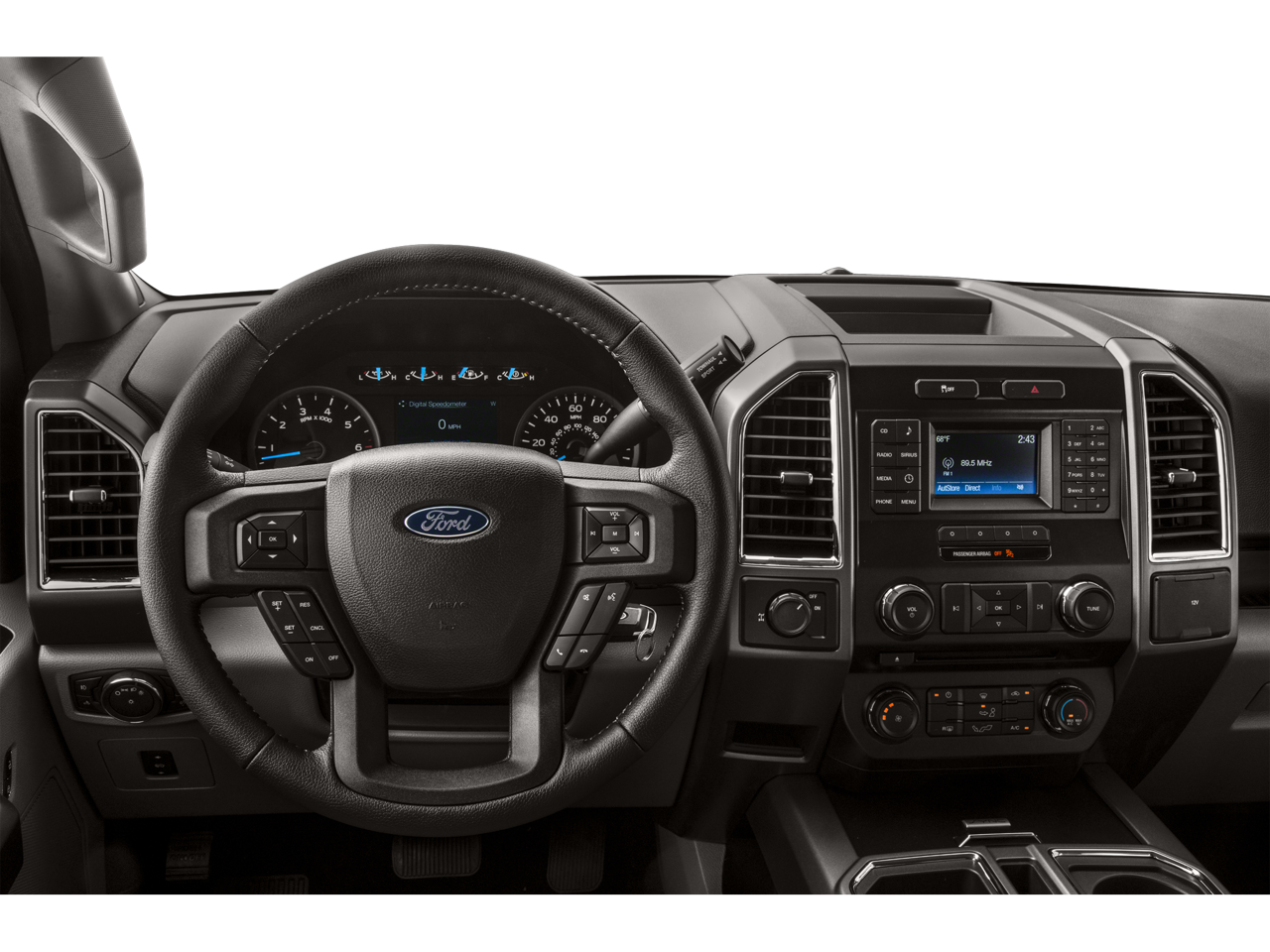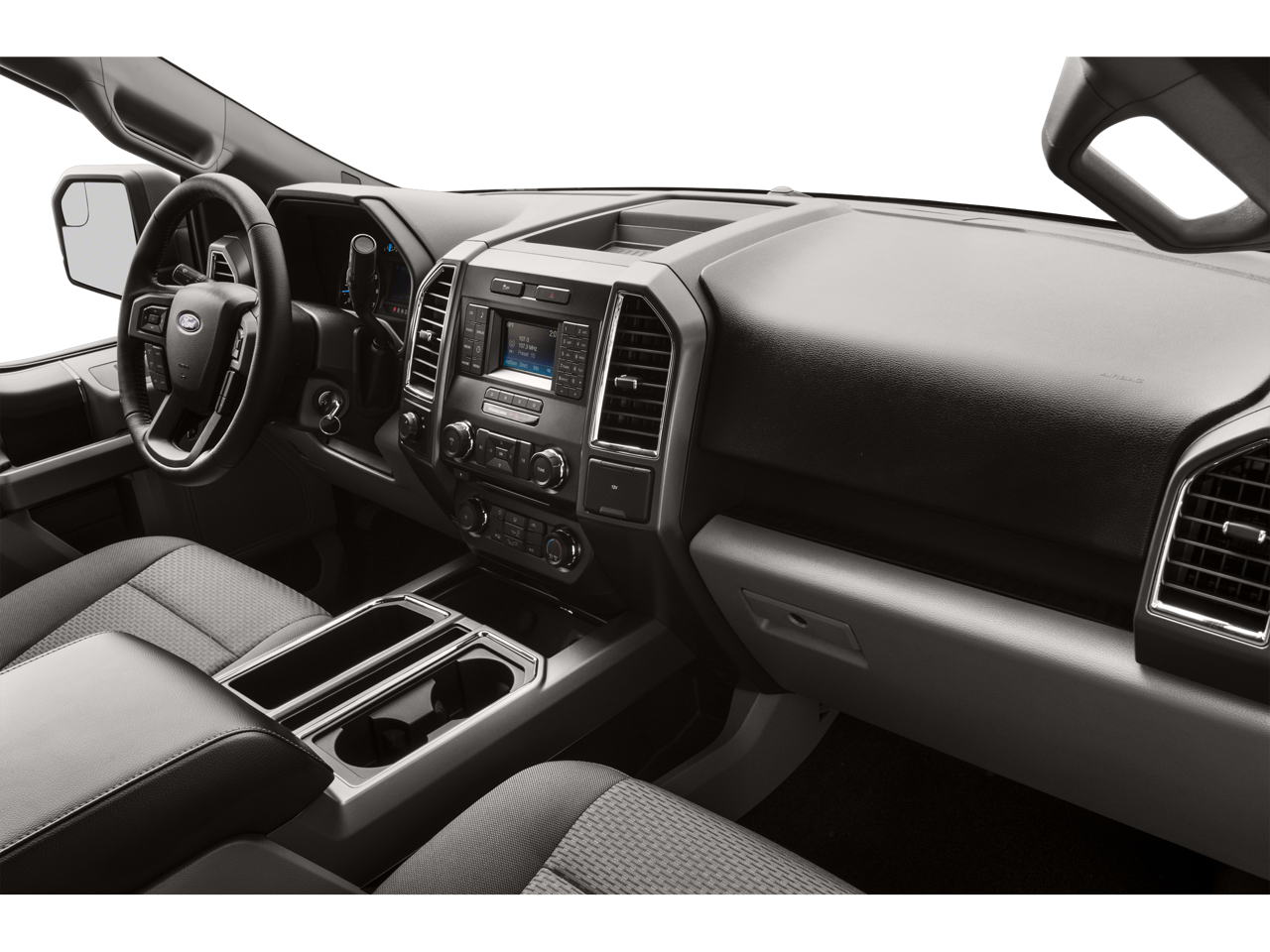 4-Wheel Disc Brakes, 6 Speakers, ABS brakes, Air Conditioning, Alloy wheels, AM/FM radio, Auxiliary Transmission Oil Cooler, Brake assist, Bumpers: chrome, CD player, Class IV Trailer Hitch Receiver, Cloth 40/20/40 Split Front Seat, Compass, Delay-off headlights, Driver door bin, Driver vanity mirror, Dual front impact airbags, Dual front side impact airbags, Electronic Stability Control, Equipment Group 302A Luxury, Extended Range 36 Gallon Fuel Tank, Front anti-roll bar, Front Center Armrest w/Storage, Front fog lights, Front License Plate Bracket, Front reading lights, Front wheel independent suspension, Fully automatic headlights, Illuminated entry, Integrated Trailer Brake Controller, LED Side-Mirror Spotlights, Low tire pressure warning, Manual-Folding Heated Pwr Glass Trailer Tow Mirror, Max Trailer Tow Package, Occupant sensing airbag, Outside temperature display, Overhead airbag, Panic alarm, Passenger door bin, Passenger vanity mirror, Power door mirrors, Power steering, Power windows, Radio data system, Radio: AM/FM Stereo/Single-CD Player, Rear reading lights, Rear step bumper, Remote keyless entry, Security system, Speed control, Speed-sensing steering, Split folding rear seat, Spray-In Bedliner (Pre-Installed), Steering wheel mounted audio controls, SYNC Voice Recognition Communications, Tachometer, Tailgate Step w/Tailgate Lift Assist, Telescoping steering wheel, Tilt steering wheel, Traction control, Upgraded Front Stabilizer Bar, Variably intermittent wipers, Voltmeter, Wheels: 17 Silver Painted Aluminum.