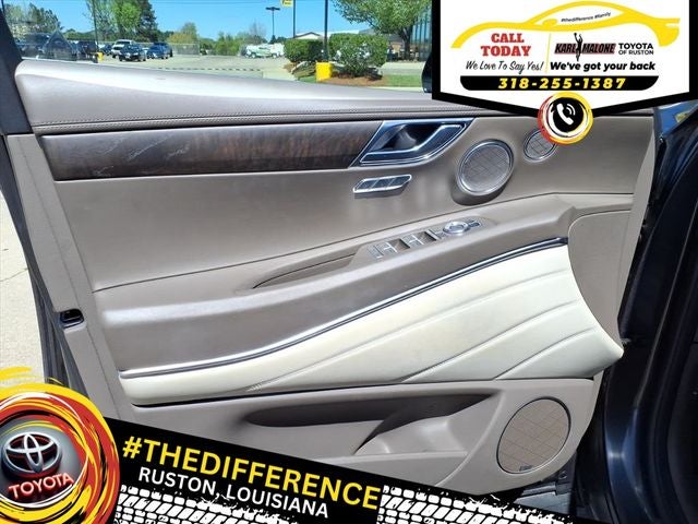 12 Speakers, 3-Zone Climate, 4-Wheel Disc Brakes, 4.363 Axle Ratio, ABS brakes, Active Motion Seat, Air Conditioning, Alloy wheels, AM/FM radio: SiriusXM, Android Auto & Apple CarPlay, Anti-whiplash front head restraints, Auto High-beam Headlights, Auto tilt-away steering wheel, Auto-dimming door mirrors, Auto-dimming Rear-View mirror, Auto-leveling suspension, Automatic temperature control, Blind-Spot View Monitor, Brake assist, Bumper Applique, Bumpers: body-color, Compass, Delay-off headlights, Driver door bin, Driver vanity mirror, Dual front impact airbags, Dual front side impact airbags, Electronic Stability Control, Electronically Controlled Suspension, Emergency communication system: Genesis Connected Services, Exterior Parking Camera Rear, Four wheel independent suspension, Front anti-roll bar, Front Bucket Seats, Front Center Armrest, Front dual zone A/C, Front reading lights, Fully automatic headlights, Garage door transmitter: HomeLink, Genuine wood console insert, Genuine wood dashboard insert, Genuine wood door panel insert, Heads-Up Display, Heated & Ventilated Front Bucket Seats, Heated 2nd Row Seats, Heated door mirrors, Heated front seats, Heated steering wheel, Illuminated entry, Knee airbag, Leather Seating Surfaces, Leather steering wheel, Leatherette Seating Surfaces, Lexicon Premium Audio w/21-Speakers, Low tire pressure warning, Memory seat, Navigation System, Occupant sensing airbag, Outside temperature display, Overhead airbag, Overhead console, Panic alarm, Passenger door bin, Passenger vanity mirror, Power door mirrors, Power driver seat, Power Driver Seat Bolster & Cushion Extension, Power Liftgate, Power moonroof, Power passenger seat, Power steering, Power windows, Prestige Package 04, Radio data system, Radio: AM/FM/SiriusXM/HD Premium Audio System, Rain sensing wipers, Rear air conditioning, Rear anti-roll bar, Rear Parking Collision-Avoidance Assist, Rear reading lights, Rear seat center armrest, Rear side impact airbag, Rear window defroster, Rear window wiper, Remote keyless entry, Remote Smart Parking Assist, Road Active Noise Cancellation, Security system, Speed control, Speed-sensing steering, Speed-Sensitive Wipers, Split folding rear seat, Spoiler, Steering wheel memory, Steering wheel mounted audio controls, Surround View Monitor, Tachometer, Telescoping steering wheel, Tilt steering wheel, Tow Hitch, Traction control, Trip computer, Turn signal indicator mirrors, Variably intermittent wipers, Ventilated front seats, Wheel Locks, Wheels: 19 x 8.5J Alloy, Wheels: 20 x 8.5J Alloy, Wheels: 22 x 9.5J Alloy.