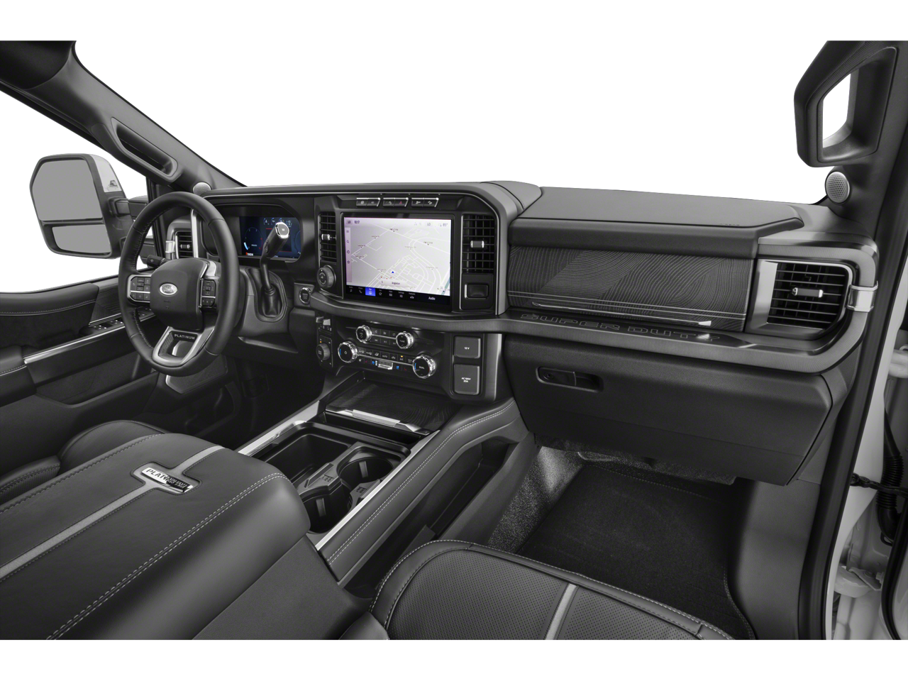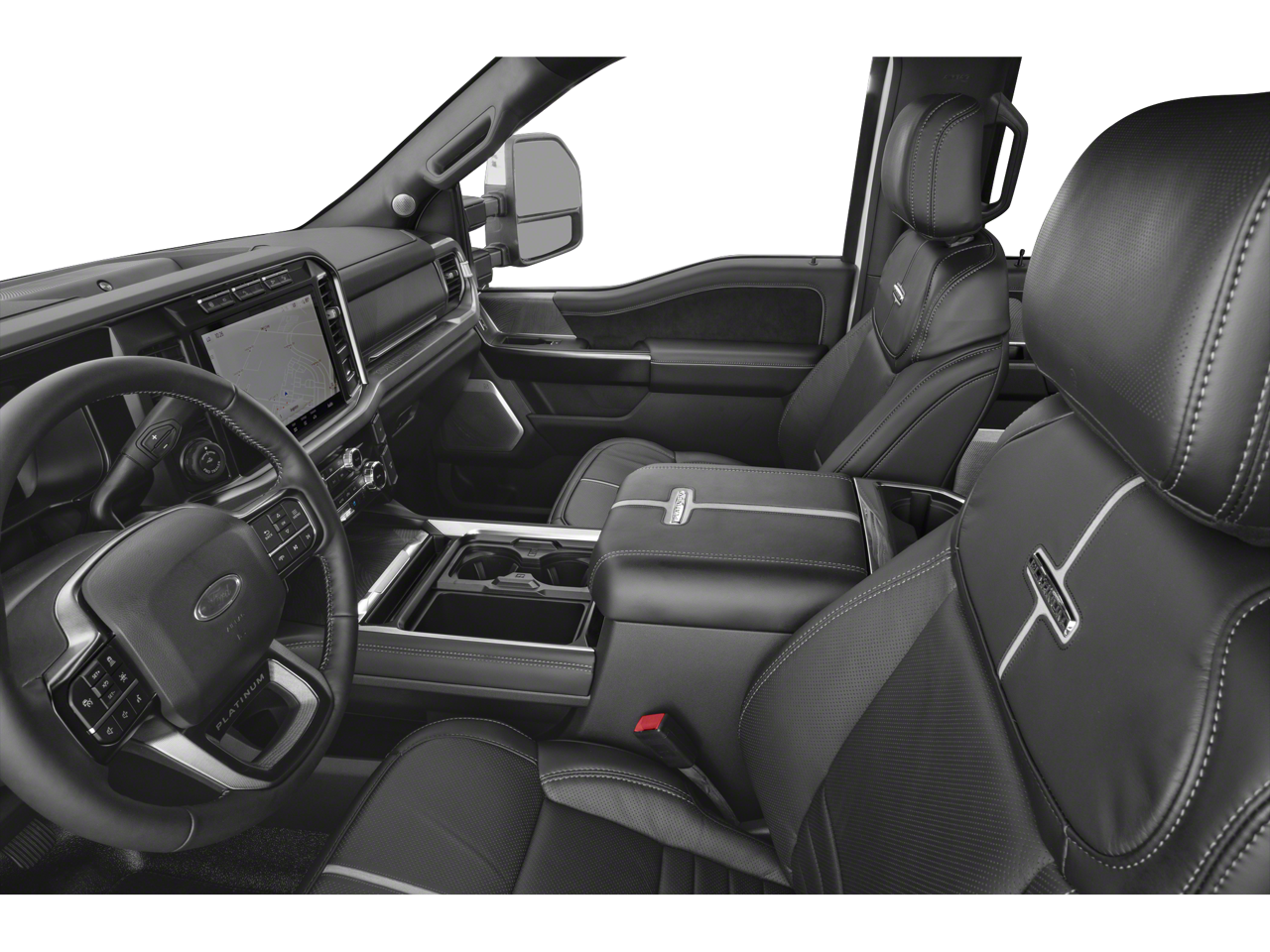 17 Forged Polished Aluminum Wheels, 18 Speakers, 4-Wheel Disc Brakes, ABS brakes, Adjustable pedals, Air Conditioning, Alloy wheels, AM/FM radio: SiriusXM with 360L, Auto High-beam Headlights, Auto tilt-away steering wheel, Auto-dimming Rear-View mirror, Automatic temperature control, Brake assist, Bumpers: body-color, Compass, Delay-off headlights, Driver door bin, Driver vanity mirror, Dual front impact airbags, Dual front side impact airbags, Dual rear wheels, Electronic Stability Control, Emergency communication system: SYNC 4 911 Assist, Exterior Parking Camera Rear, Flow-Through Console, Front anti-roll bar, Front Bucket Seats, Front Center Armrest, Front dual zone A/C, Front fog lights, Front reading lights, Fully automatic headlights, Garage door transmitter, GVWR: 14,000 lb Payload Package, Heads-Up Display, Heated door mirrors, Heated front seats, Heated rear seats, Heated steering wheel, Illuminated entry, Leather steering wheel, Limited Slip w/3.73 Axle Ratio, Low tire pressure warning, Memory seat, Navigation system: Connected Navigation, Outside temperature display, Overhead airbag, Overhead console, Panic alarm, Passenger door bin, Passenger vanity mirror, Pedal memory, Power door mirrors, Power driver seat, Power passenger seat, Power steering, Power windows, Radio: B&O Unleashed Sound System by Bang & Olufsen, Rain sensing wipers, Rear anti-roll bar, Rear reading lights, Rear seat center armrest, Rear step bumper, Rear window defroster, Remote keyless entry, Security system, SiriusXM Radio w/360L, Speed control, Split folding rear seat, Steering wheel memory, Steering wheel mounted A/C controls, Steering wheel mounted audio controls, SYNC 4 w/Enhanced Voice Recognition, Tachometer, Telescoping steering wheel, Tilt steering wheel, Traction control, Trip computer, Turn signal indicator mirrors, Unique Platinum Leather 40/Console/40 Seats, Variably intermittent wipers, Ventilated front seats.