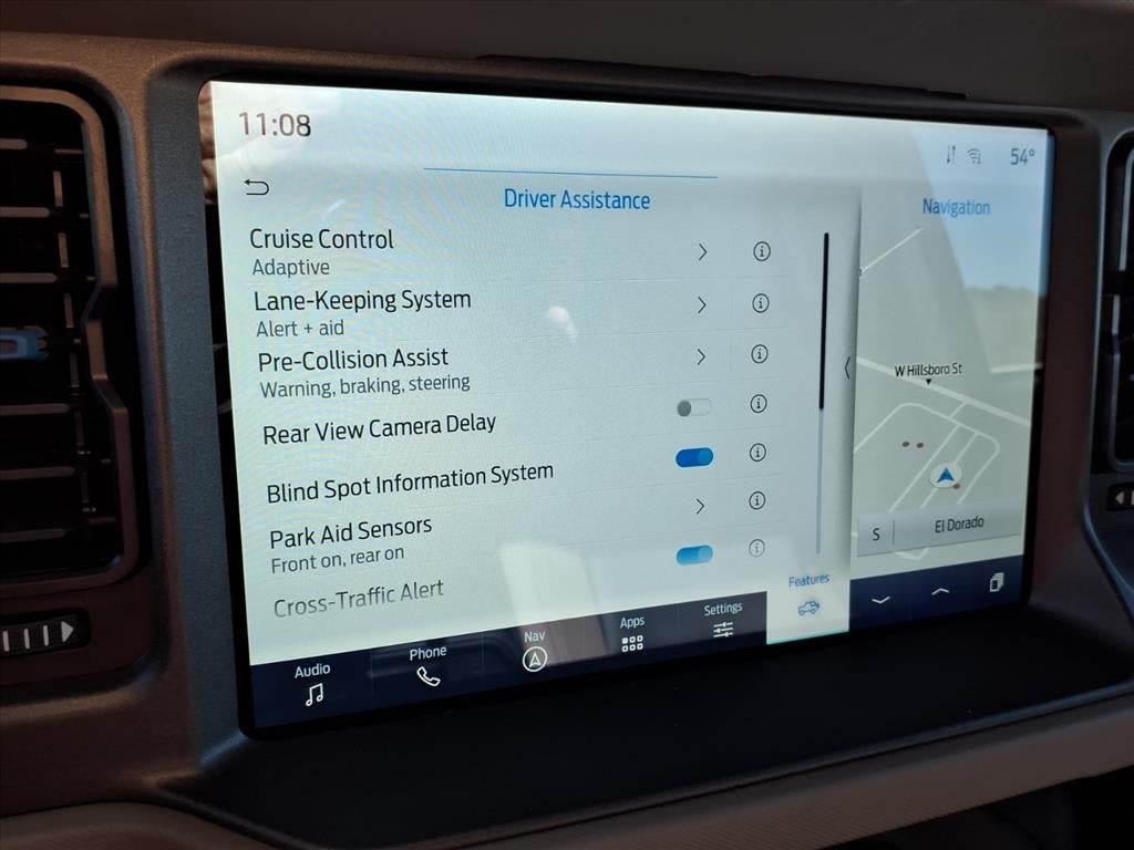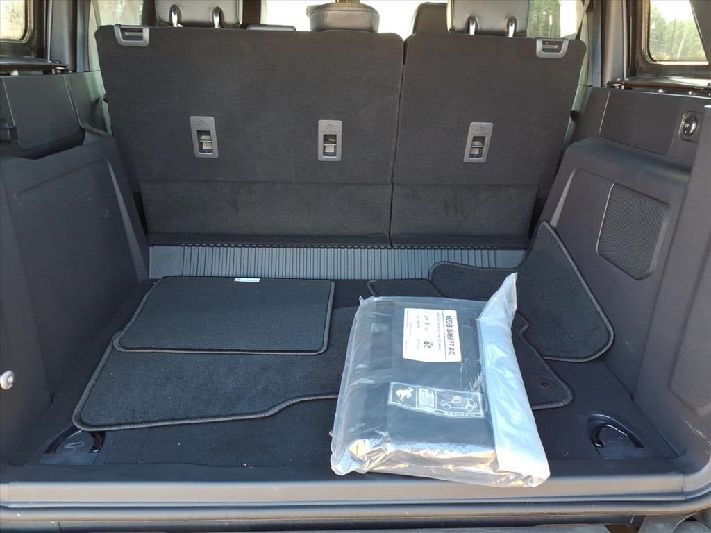 10 Speakers w/Subwoofer, 360-Degree Camera, 4-Wheel Disc Brakes, 4.7 Axle Ratio, 7 Speakers, ABS brakes, Adaptive Cruise Control, Additional Sound Deadening, Air Conditioning, Alloy wheels, AM/FM radio: SiriusXM with 360L, AM/FM Stereo, Auto High-beam Headlights, Auto-dimming Rear-View mirror, Automatic temperature control, Brake assist, Carbonized Gray Molded-In-Color Hard Top, Compass, Connected Navigation, Delay-off headlights, Driver door bin, Driver vanity mirror, Dual front impact airbags, Dual front side impact airbags, Electronic Stability Control, Emergency communication system: 911 Assist, Equipment Group 354A High/Lux Package, Evasive Steering Assist, Exterior Parking Camera Rear, Front anti-roll bar, Front Bucket Seats, Front Center Armrest, Front dual zone A/C, Front fog lights, Front Parking Sensors, Front reading lights, Front Row Top Panels Storage Bag, Front wheel independent suspension, Fully automatic headlights, Hard Top Sound Deadening Headliner, Heated door mirrors, Heated front seats, Heated Leather-Trimmed/Vinyl Bucket Seats, Heated Steering Wheel, Illuminated entry, Information on Demand Panel, Integrated roll-over protection, Leather Shift Knob, Low tire pressure warning, Navigation system: Connected Navigation, Occupant sensing airbag, Outside temperature display, Overhead airbag, Overhead console, Panic alarm, Passenger door bin, Passenger vanity mirror, Power door mirrors, Power steering, Power windows, Radio data system, Radio: B&O Sound System by Bang & Olufsen, Rear-Window Defroster & Washer, Remote keyless entry, Security system, Sideview Mirrors, SiriusXM Radio w/360L, Speed control, Split folding rear seat, Steering wheel mounted audio controls, SYNC 4, Tachometer, Telescoping steering wheel, Tilt steering wheel, Traction control, Trip computer, Universal Garage Door Opener, Variably intermittent wipers, Voltmeter, Wheels: 17 Black High Gloss-Painted Aluminum, Wireless Charging Pad.